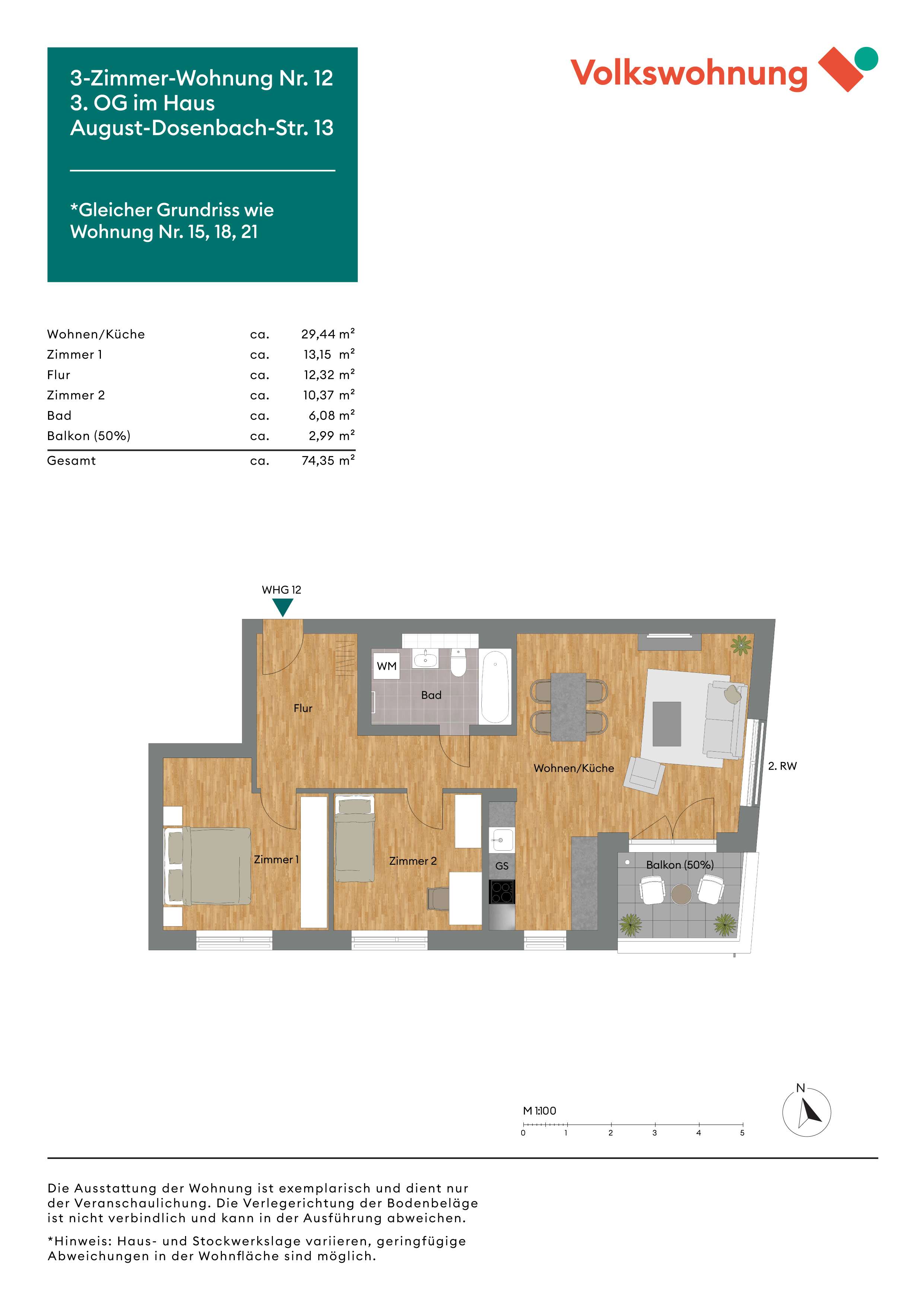 Insgesamt entstehen im August-Klingler-Areal 10 Zwei-, 22 Drei-, 19 Vier- und 4 Fünf-Zimmer-Wohnungen von ca. 46 m² bis 126 m². Alle Eigentumswohnungen im Erdgeschoss haben eine Terrasse mit Gartenanteil (Sondernutzungsrecht). Die weiteren Eigentumswohnungen haben einen Balkon bzw. eine Dachterrasse. Elf der 55 Wohnungen sind nach § 35 LBO barrierefrei.