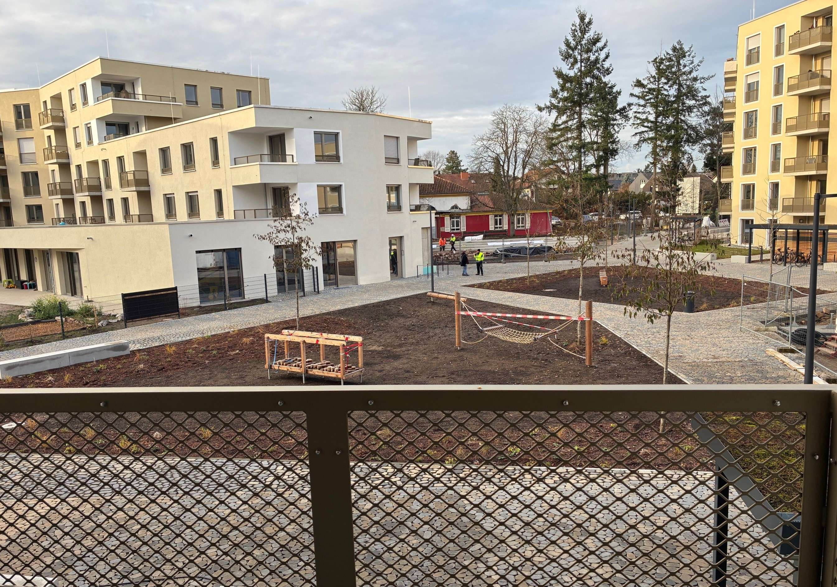 Im 2. Bauabschnitt – August-Dosenbach-Straße 9, 9a, 15, 15a+c und 11, 11a-d sind 44 Zwei-, 41 Drei-, 22 Vier- und 6 Fünf-Zimmer-Wohnungen sowie eine Tiefgarage entstanden. Die Fertigstellung der letzten 116 Wohneinheiten ist ab 15.08.2025 geplant.