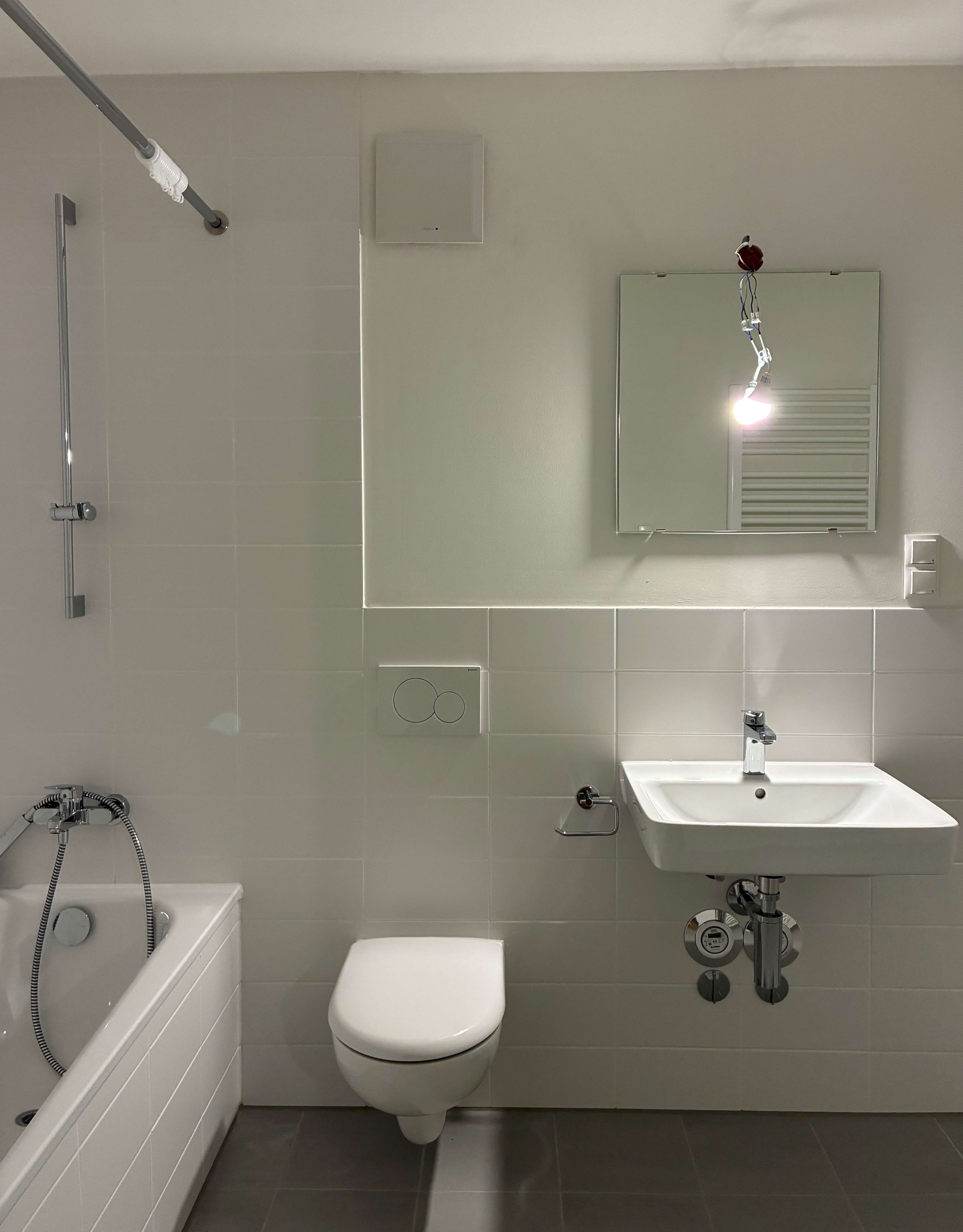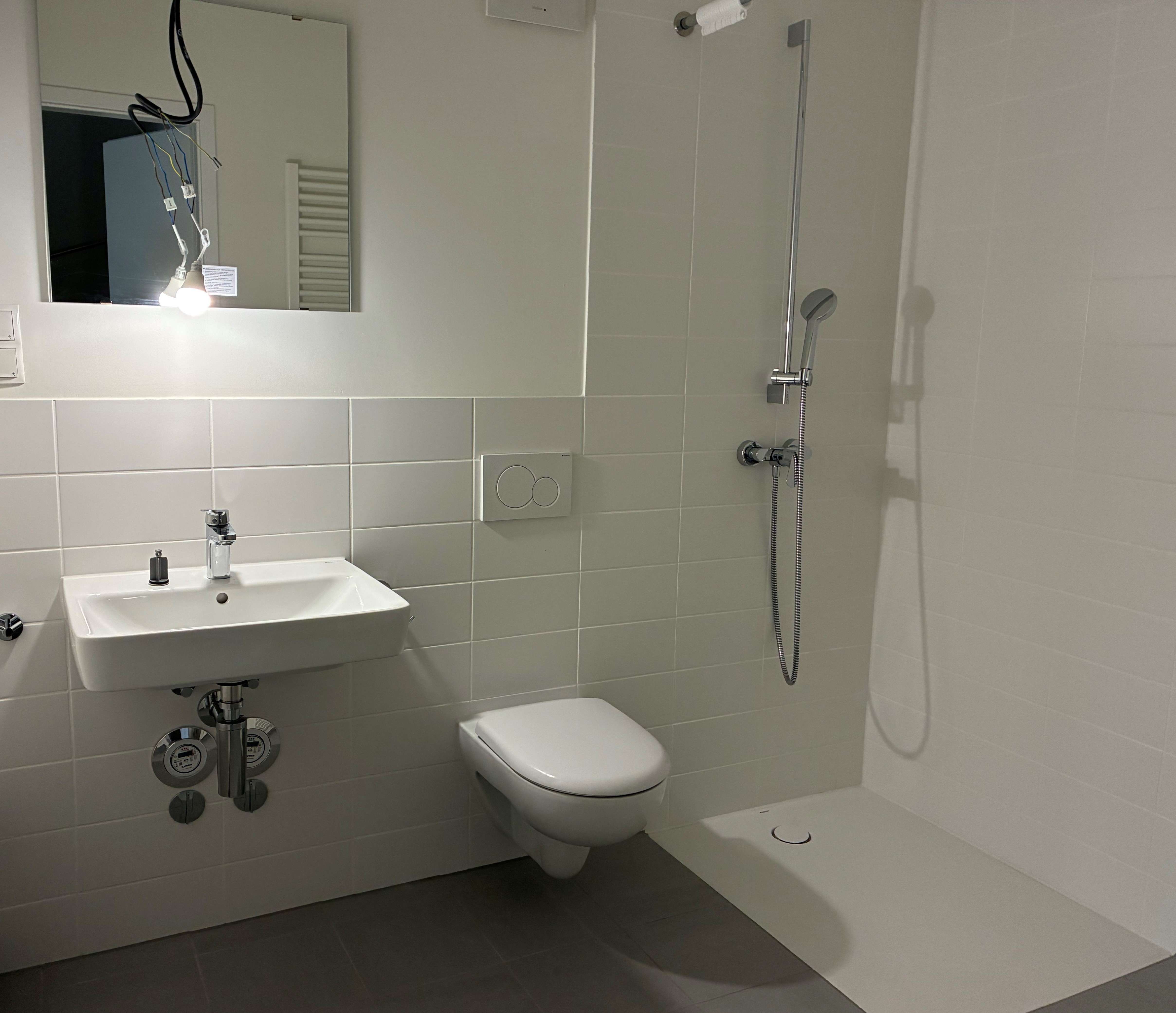 Küchen-/Ess-/Wohnbereich mit ca. 28 m², Ausgang zur Nord-West-Terrasse, ein Duschbad mit ca. 5 m² und ein Abstellraum unterhalb der Treppe. Des Weiteren gehört ein Kellerraum zur Wohnung.