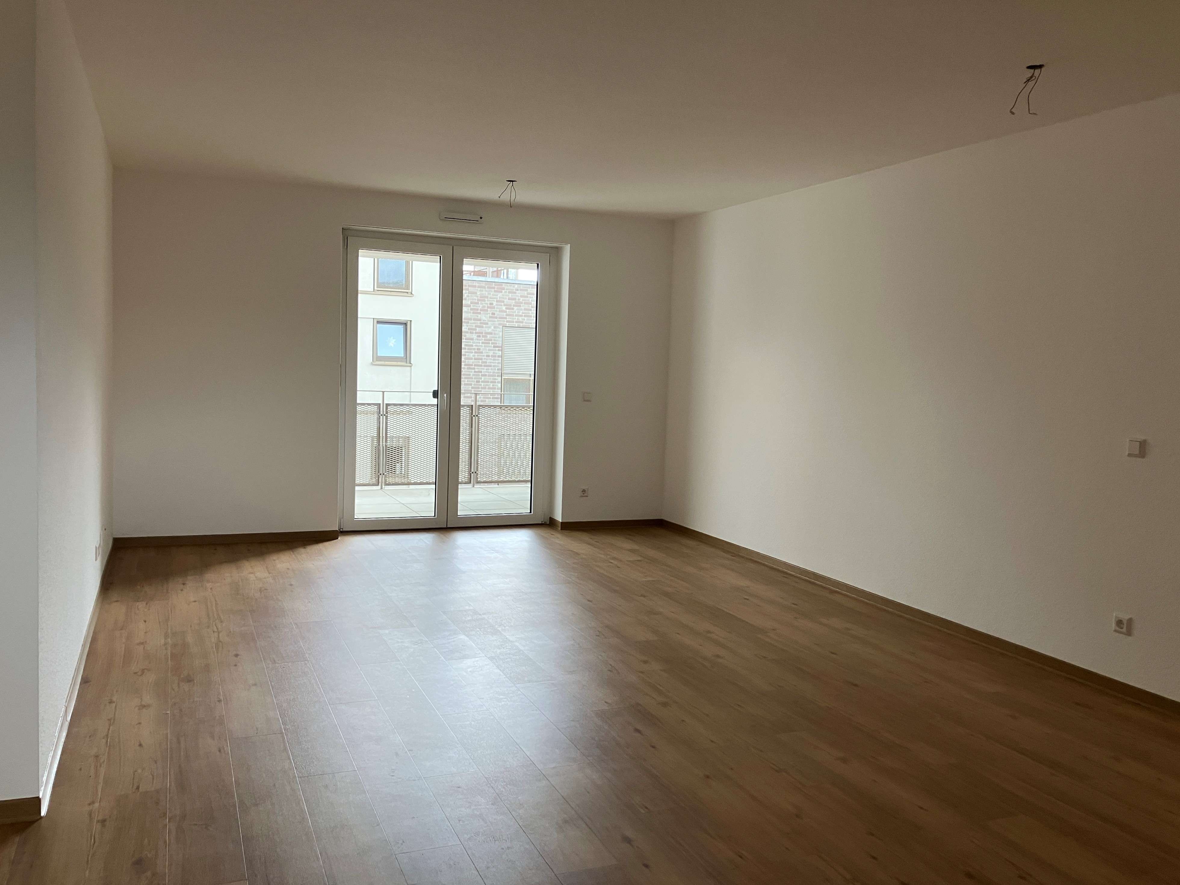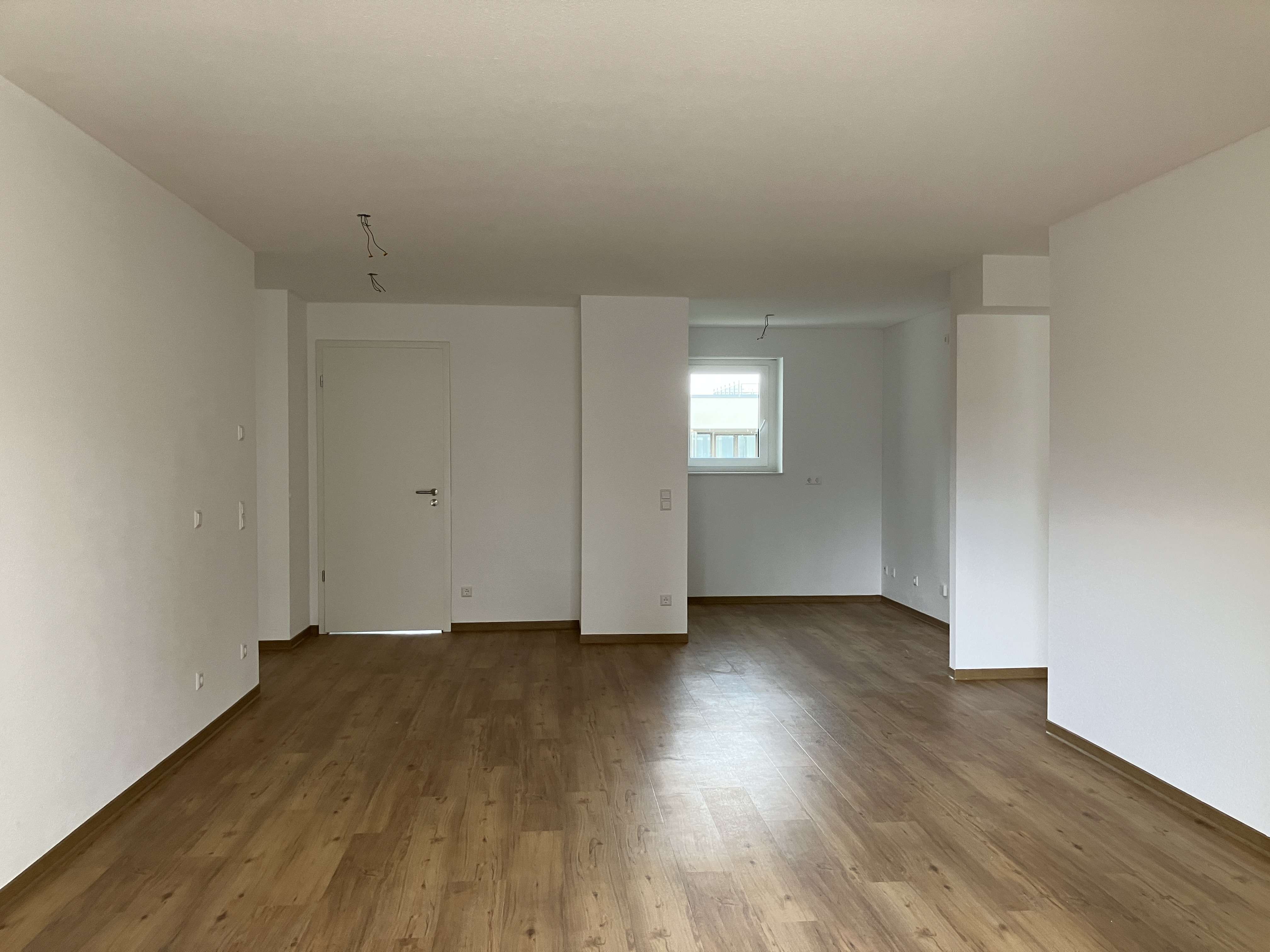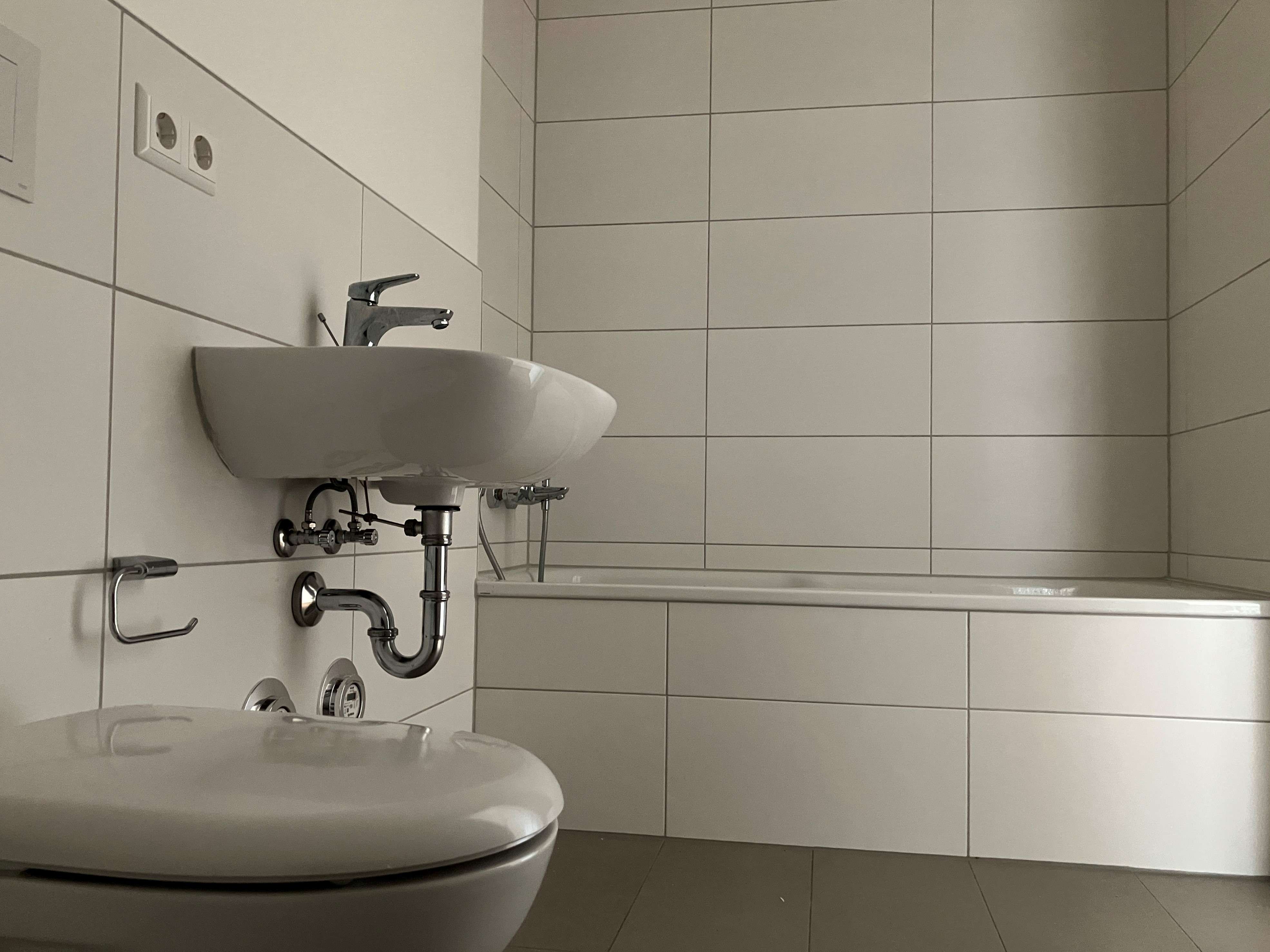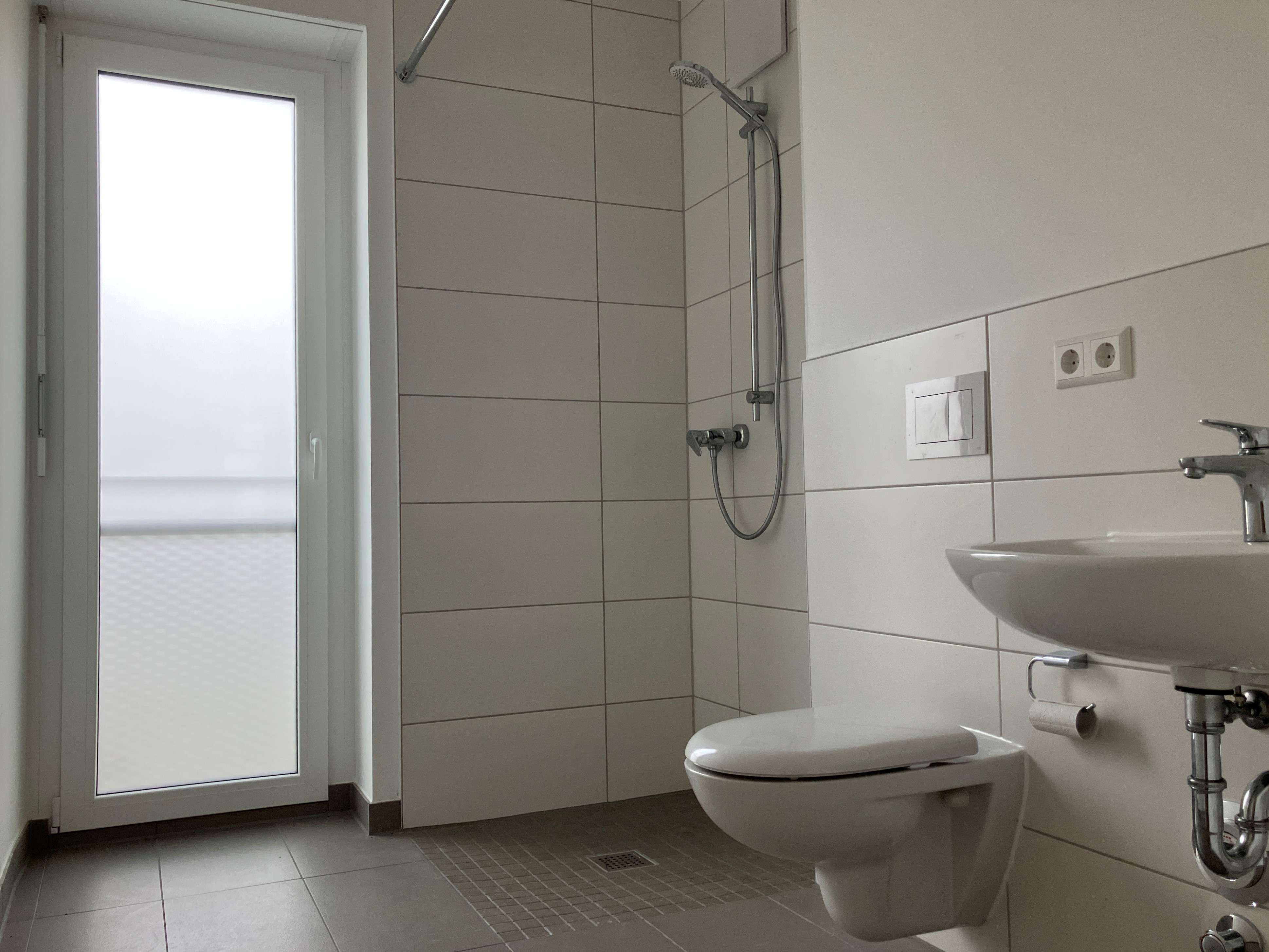 Fußbodenheizung, Gegensprechanlage, Wände: Raufasertapete, weiß gestrichen, Vinylboden Eiche-Optik, Bäder: weiße Wandfliesen und Bodenfliesen in hellgrau, kein Fliesenspiegel in der Küche, Sonnenschutz: Rollladen mit Rollladenkurbel. Vermieterseitige Montage von Bad-Accessoires wie z.B. Duschvorhangstange, Handtuchknöpfe und Toilettenpapierhalter.