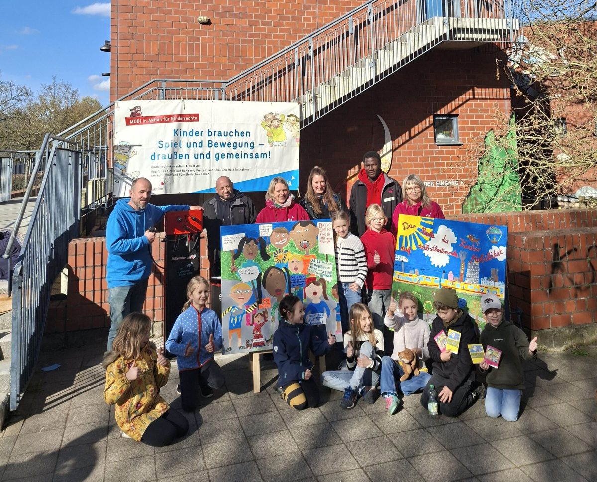 Mit dabei war auch der Mobi-Bus mit einer bunten Spielaktion und einem groß aufgebauten Fahrrad-Parcours, sodass über 100 Kinder mit und ohne Fahrrad nach Herzenslust spielen, radeln und reparieren konnten.