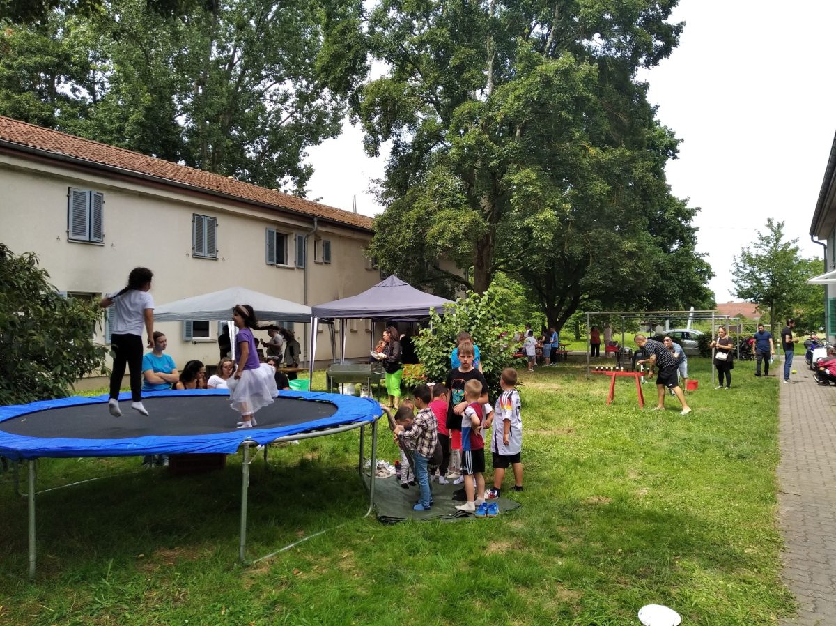 Gerne haben wir den Schülerhort Nussbaumweg bei der Ausrichtung des Sommerfest in der kleinen Siedlung unterstützt. Für die Kinder gab es ein großes Trampolin zum Hüpfen sowie verschiedene Bastel- und Spielangebote. Auf der Grünfläche standen Sitzbänke und Tische bereit. Die Mieterinnen und Mieter konnten bei Kaffee und kalten Getränken miteinander ins Gespräch kommen und verbrachten mit ihren Kindern einen schönen Nachmittag.